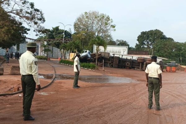 OLORUNDARE ENIMOLA, Lagos A fully loaded PMS laden tanker is reported to have fallen on its side at the Winners’ Chapel gate, along Ota-Idiroko Expressway, Ota, sparking panic and concerns from residents and motorists. The report credited to a ‘sitrep’ from the Ogun State Traffic Compliance and Enforcement Agency, states; that the loaded petrol tanker…