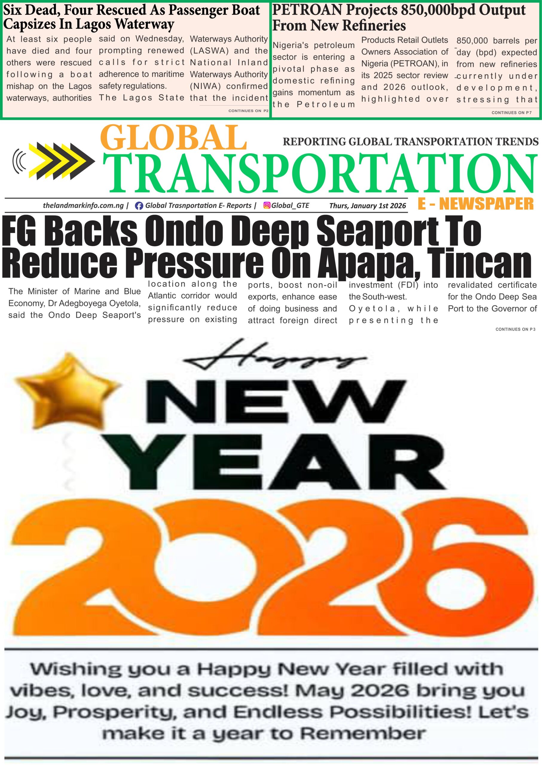 RoadGTe-Newspaper Online Today (1/1/26) admin4 months ago01 mins GTe-Newspaper, Thursday 1st of January, 2026Download Post navigation Previous: Six Dead, Four Rescued As Passenger Boat Capsizes In Lagos WaterwayNext: GTe-Newspaper Online Today (2/1/26) Leave a Reply Cancel replyYour email address will not be published. Required fields are marked *Comment * Name * Email * Website Save my name, email, and website in this browser for the next time I comment.