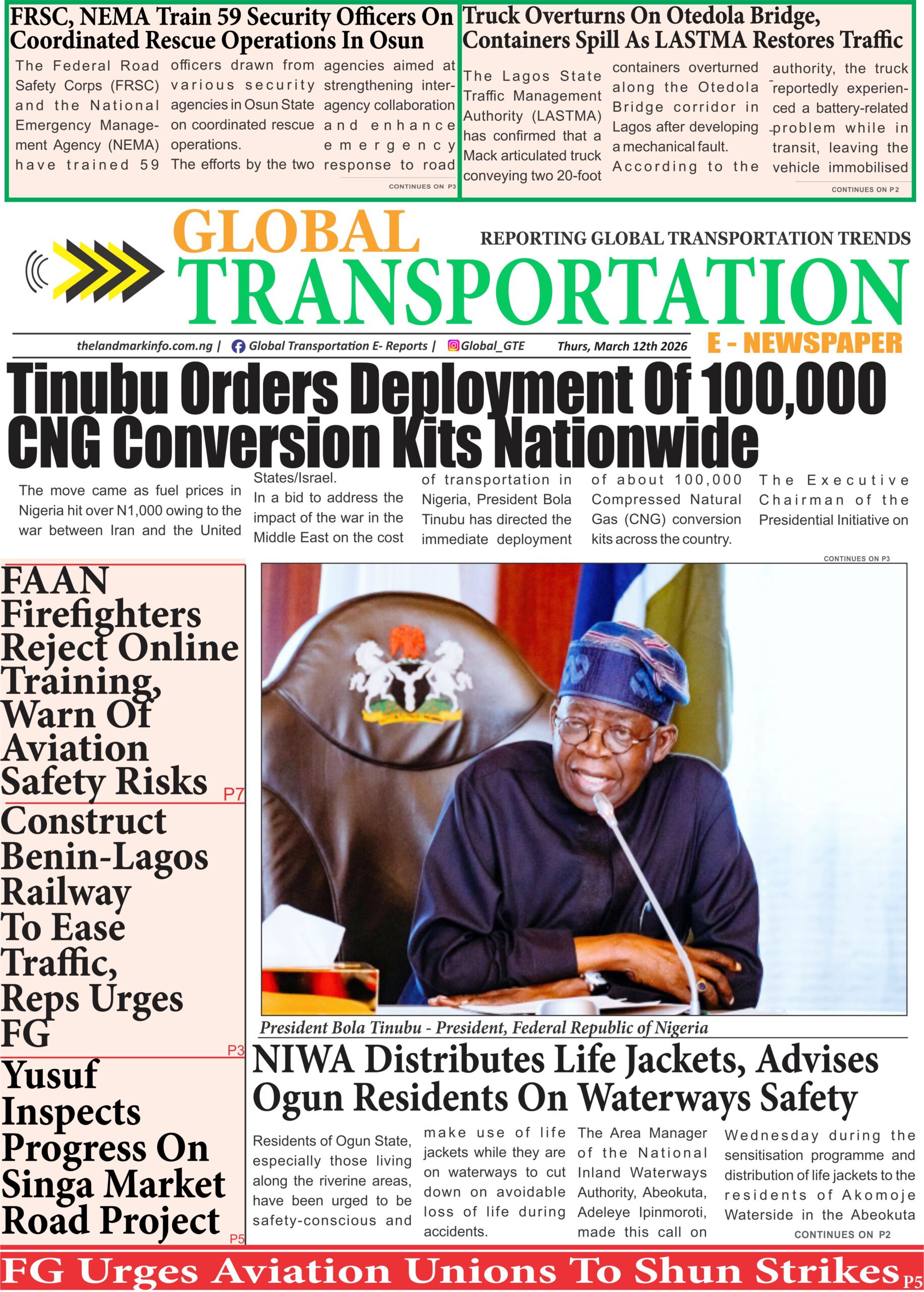 Greatpen Global Media Ltd (RC: 1919409) publishes the Global Transportation E-Newspaper, focused on promoting safety and development in the transport sector. Since October 2, 2024, we've delivered daily news (Mon–Fri) with a global reach.