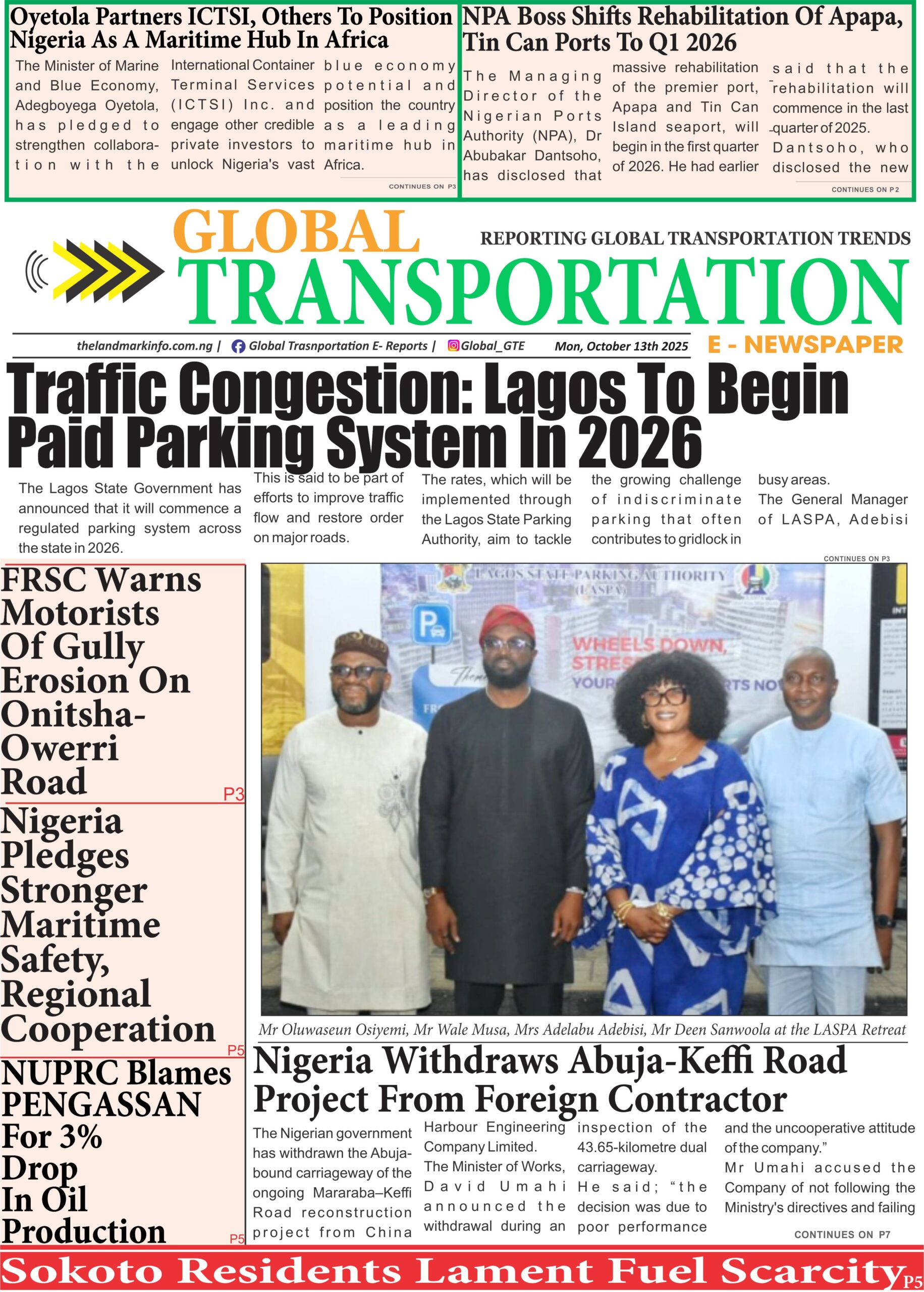 Air General News Logistics Maritime RoadGTe-Newspaper Online Today (13/10/25) admin6 months ago01 mins GTe-Newspaper, Monday 13th of October, 2025_Download Post navigation Previous: FRSC Corps’ Marshal Calls For Passenger Vigilance As 10 Die In Obajana Road CrashNext: Traffic Congestion: Lagos To Begin Paid Parking System In 2026 Leave a Reply Cancel replyYour email address will not be published. Required fields are marked *Comment * Name * Email * Website Save my name, email, and website in this browser for the next time I comment.