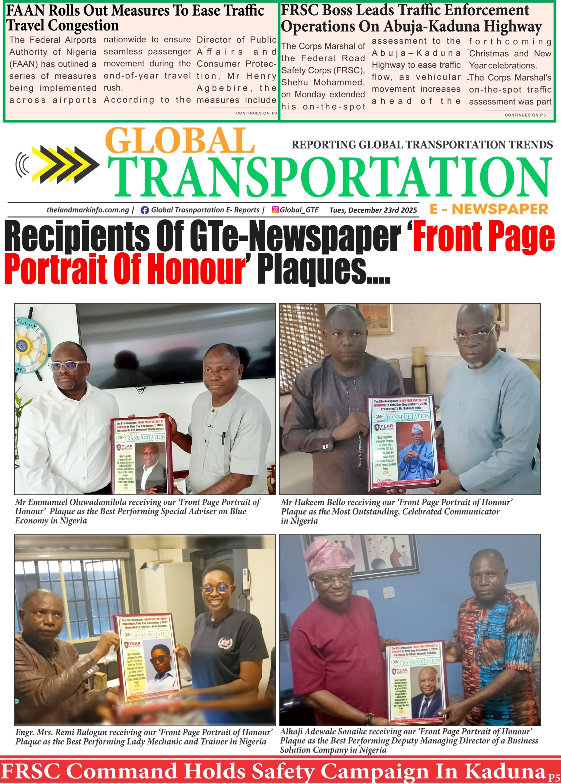 Greatpen Global Media Ltd (RC: 1919409) publishes the Global Transportation E-Newspaper, focused on promoting safety and development in the transport sector. Since October 2, 2024, we've delivered daily news (Mon–Fri) with a global reach.