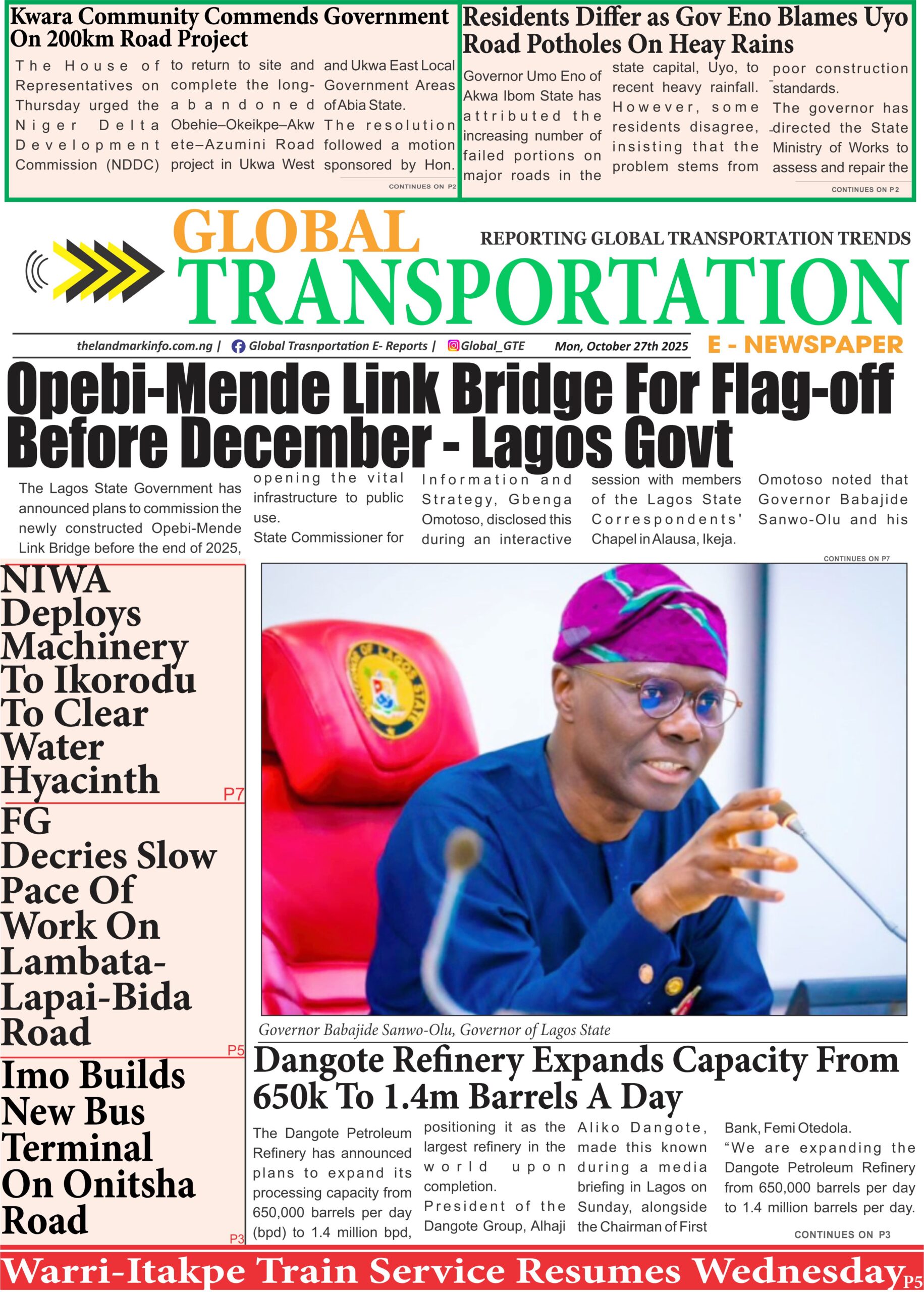 RoadGTe-Newspaper Online Today (27/10/25) admin6 months ago01 mins GTe-Newspaper, Monday 27th of October, 2025_Download Post navigation Previous: Ogun Appeals For Calm Over Ongoing Abeokuta-Sango-Ota Road ConstructionNext: GTe-Newspaper Online Today (28/10/25) Leave a Reply Cancel replyYour email address will not be published. Required fields are marked *Comment * Name * Email * Website Save my name, email, and website in this browser for the next time I comment.