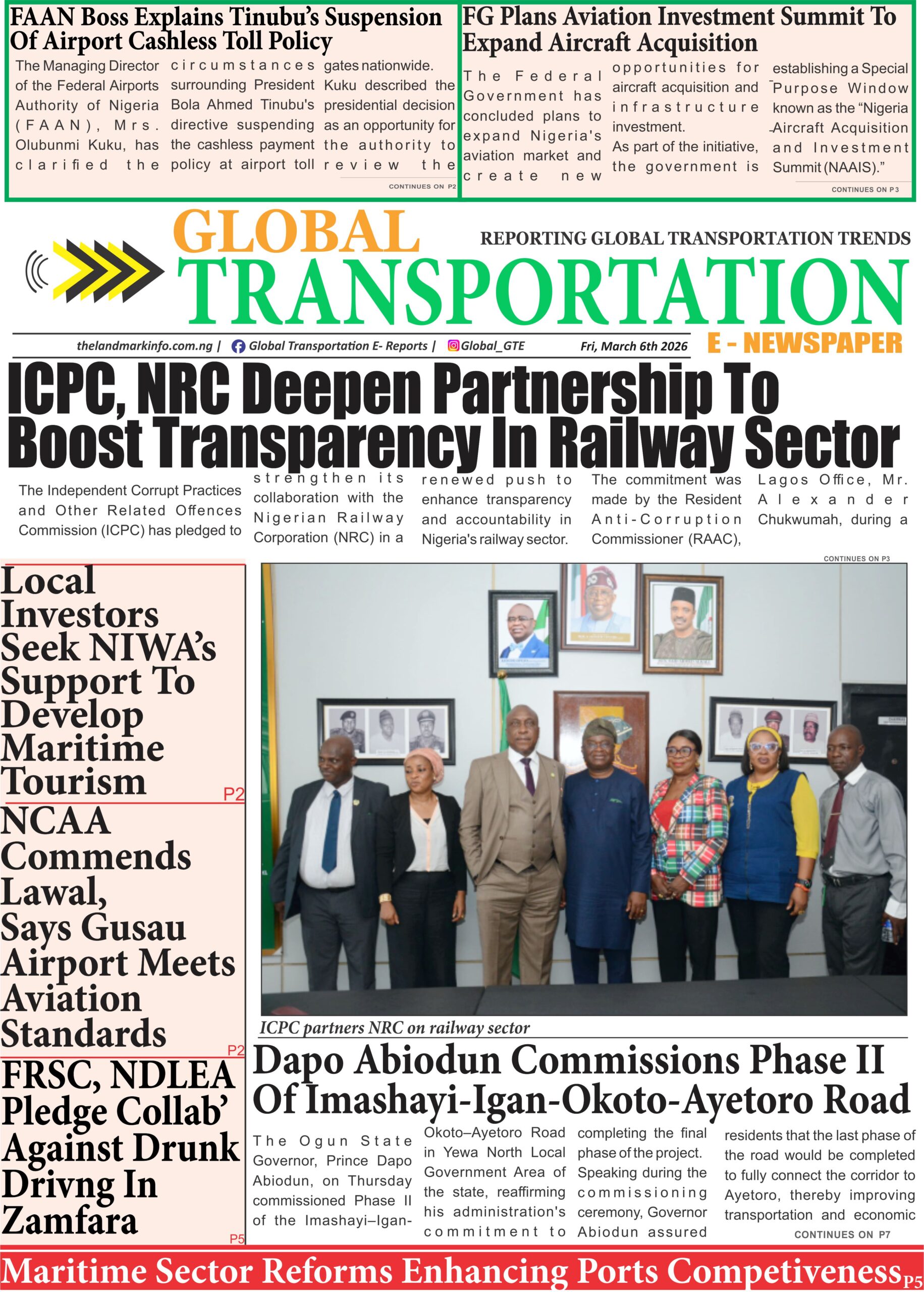 RoadGTe-Newspaper Online Today (6/3/26) admin1 month ago01 mins GTe-Newspaper, Friday 6th of March, 2026Download Post navigation Previous: ICPC, NRC Deepen Partnership to Boost Transparency in Railway SectorNext: Truck Crushes Baby, Two Others To Death On Lagos-Abeokuta Expressway Leave a Reply Cancel replyYour email address will not be published. Required fields are marked *Comment * Name * Email * Website Save my name, email, and website in this browser for the next time I comment.