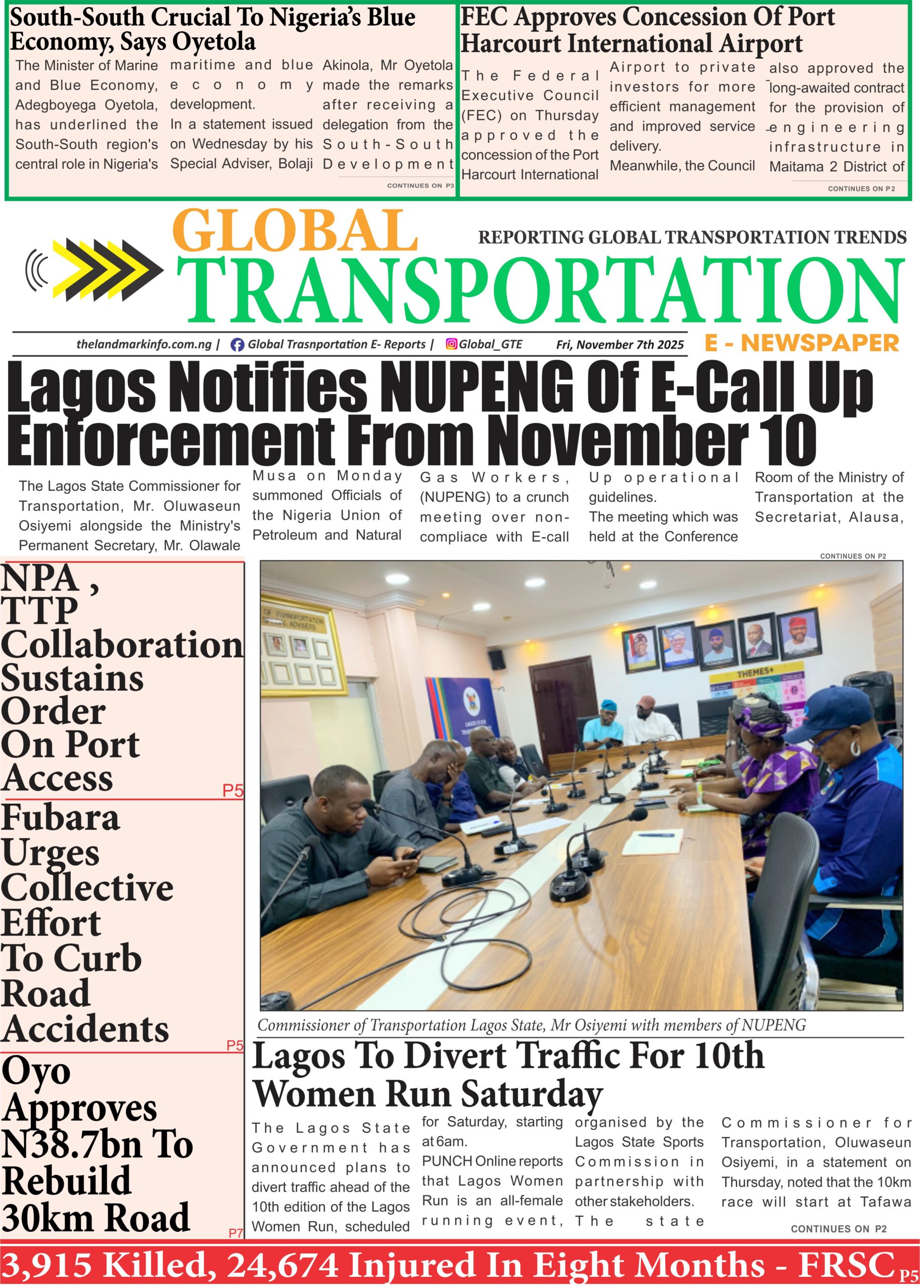Aviation General News Maritime Railway Road Transport SafetyGTe-Newspaper Online Today (7/11/25) admin5 months ago01 mins GTe-Newspaper, Friday 7th of November, 2025Download Post navigation Previous: Adron Homes’ Chair Commends Oyo State Real Estate Reforms, Urges Policy ContinuityNext: TRACE Firms Up Road Safety Advocacy With Foundation Laying Of Enlightenment Centre In Ota Leave a Reply Cancel replyYour email address will not be published. Required fields are marked *Comment * Name * Email * Website Save my name, email, and website in this browser for the next time I comment.